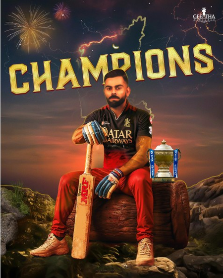 Shiva Rajkumar, who had earlier in the day posted a video encouraging the Royal Challengers Bangalore, wrote, "The Champions of Heart are now the owners of the cup. Congratulations @royalchallengers.bengaluru #PlayBold" soon after the team won the title.